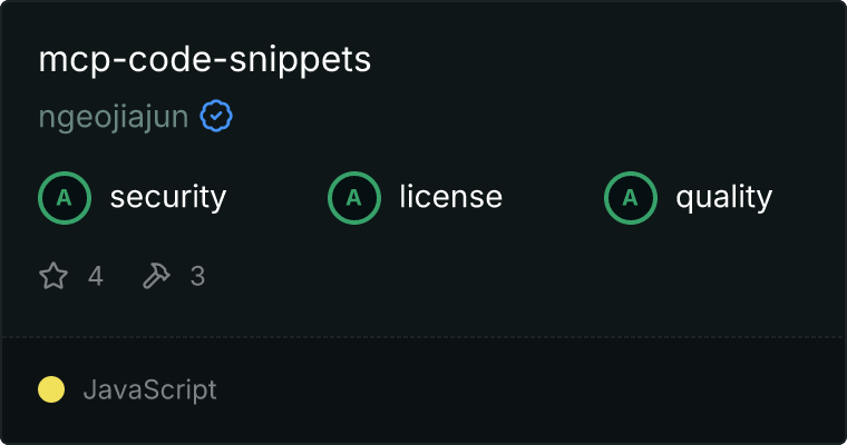Code Snippet Server is a Model Context Protocol (MCP) server designed to manage and store code snippets across different programming languages. It provides a flexible and extensible way to create, list, and delete code snippets using a standardized server interface.